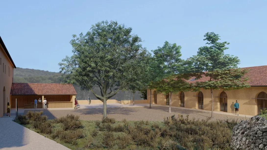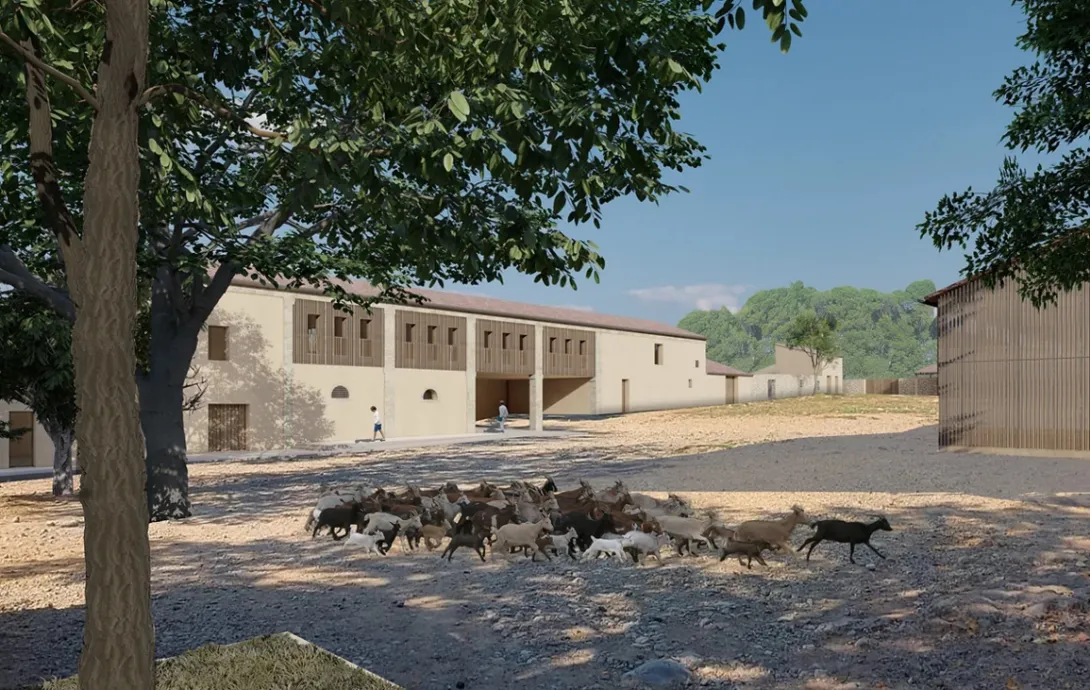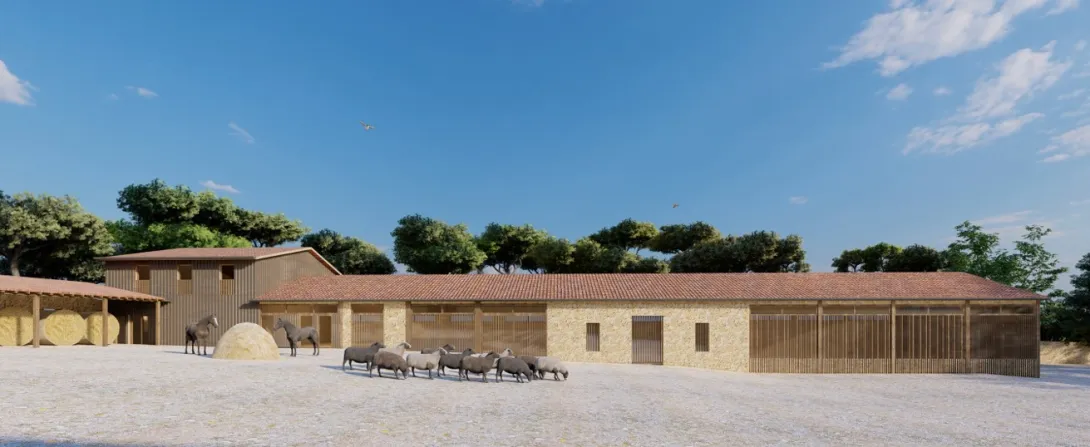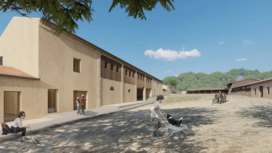 Les différents bâtiments du domaine vont être réhabilités en conservant au maximum l’existant ou en réemployant ce qui peut l’être autour d’une cour « privée » regroupant des locaux dédiés à de la production agricole et d’une cour « publique » regroupant des lieux d’accueil, de vente, de réception et de formation.