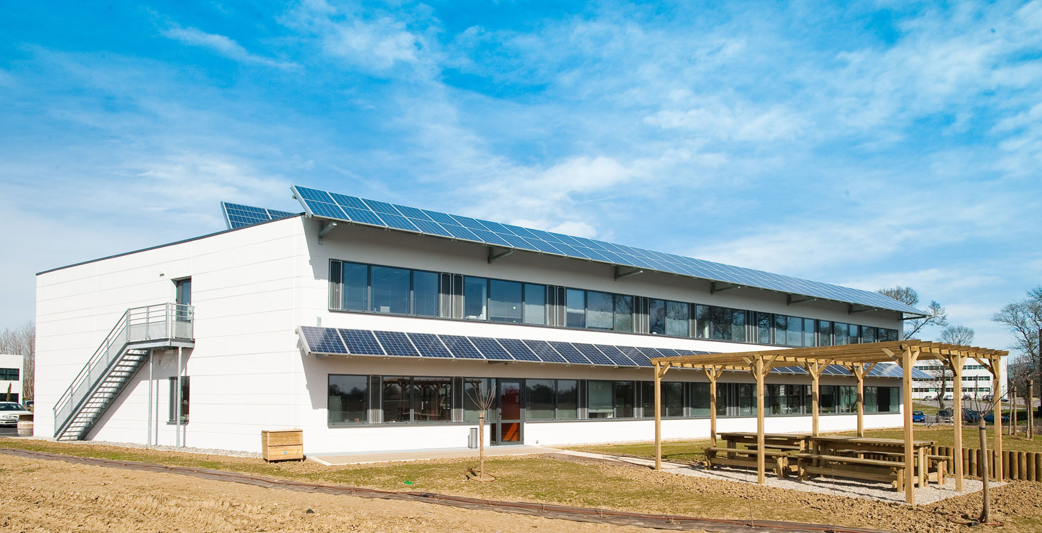 Le programme était à la fois clair et ambitieux : s’engager dans la construction d’un bâtiment à énergie positive, appellation dont la définition n’en était vraiment qu’à ses prémices en 2007, lorsque les premiers traits du projet ont été tracés. De plus, alors que les autres maîtres d’ouvrage ne comptabilisent encore aujourd’hui que l’énergie consommée par les 5 usages réglementés, l’équipe a décidé que la production électrique, en l’occurrence photovoltaïque, couvrirait également les consommations énergétiques de l’activité, autrement dit la facture électrique réelle en totalité (ordinateurs, photocopieurs, équipements de bureautique, électroménager). Cet objectif très ambitieux s’est transformé en réalité dès la première année ; après 4,5 années d’exploitation, le bilan de production (270 000 kWh) est supérieur de 110 000 kWh à la consommation, soit un taux de couverture des besoins de 170%, comme le prouve le panneau lumineux affichant en temps réel les consommations et productions du bâtiment. Et ce bon résultat n’est pas obtenu au détriment du bien-être des utilisateurs puisque le bâtiment est chauffé à 22°C, voire 24°C l’hiver, le renouvellement d’air est le double du débit réglementaire, et le confort acoustique et visuel est également optimisé !