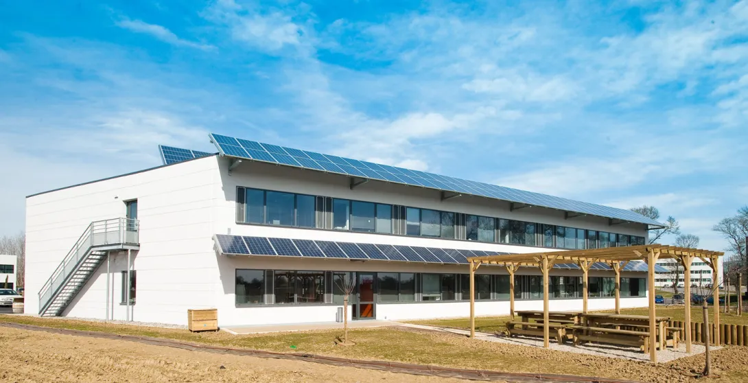 Fiche BâtiBuzz de retour d’expérience sur la construction du nouveau siège du groupe Gamba Acoustique à Labège, bâtiment à énergie positive « toutes activités comprises ».