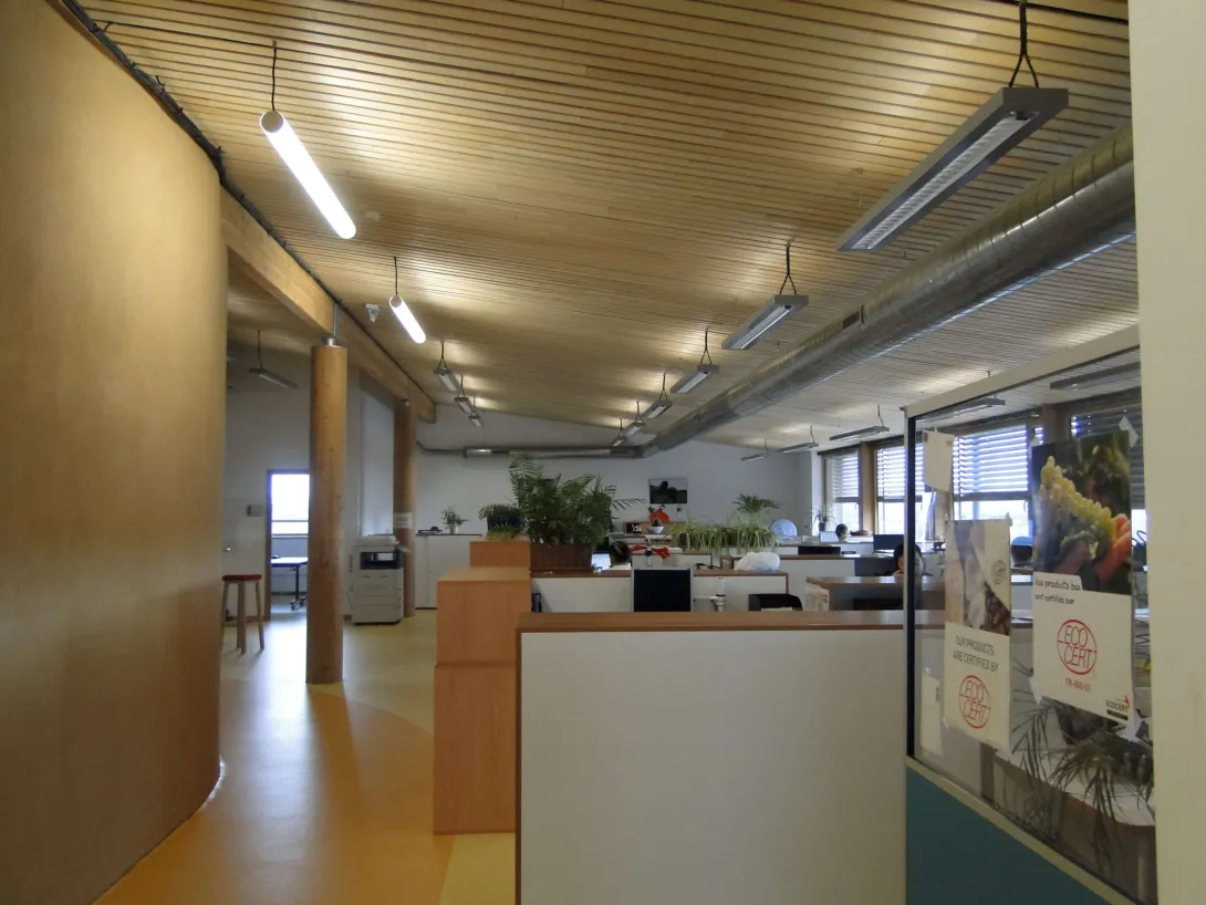 • Centrale de traitement d’air principale avec échangeur statique pour les open spaces et l’accueil via un réseau de gaines apparent. Chaque open space est traité de manière indépendante (par niveau et par façade) grâce à la régulation faite par des registres motorisés. Possibilité d’affiner le débit sur chaque bouche de soufflage.