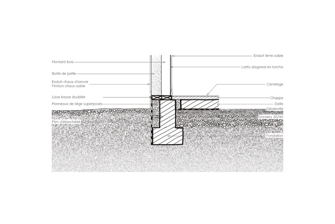 • Revêtement extérieur : enduit chaux-chanvre et finition chaux-sable