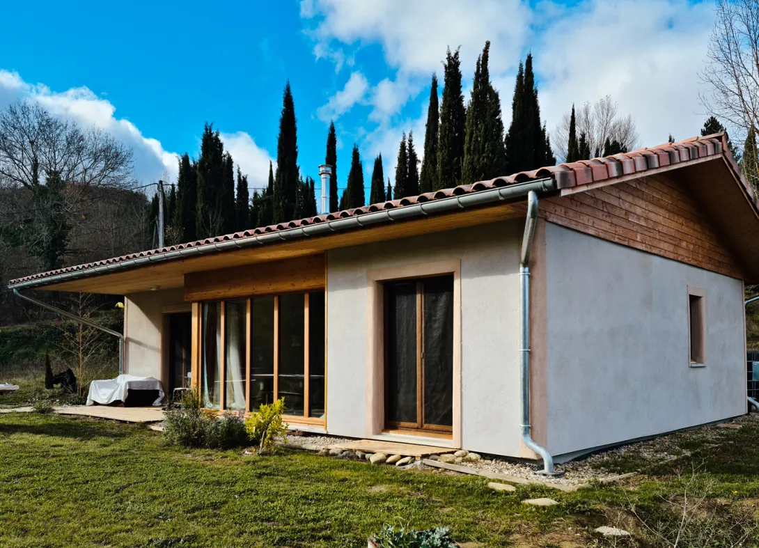 Cette fiche BâtiBuzz est développée dans le cadre du Plan Bâtiment Durable Occitanie : retour d’expérience sur la construction neuve d’une maison individuelle bioclimatique avec des matériaux bio et géosourcés (bois, terre et paille) à Festes-et-Saint-André dans l’Aude (11).