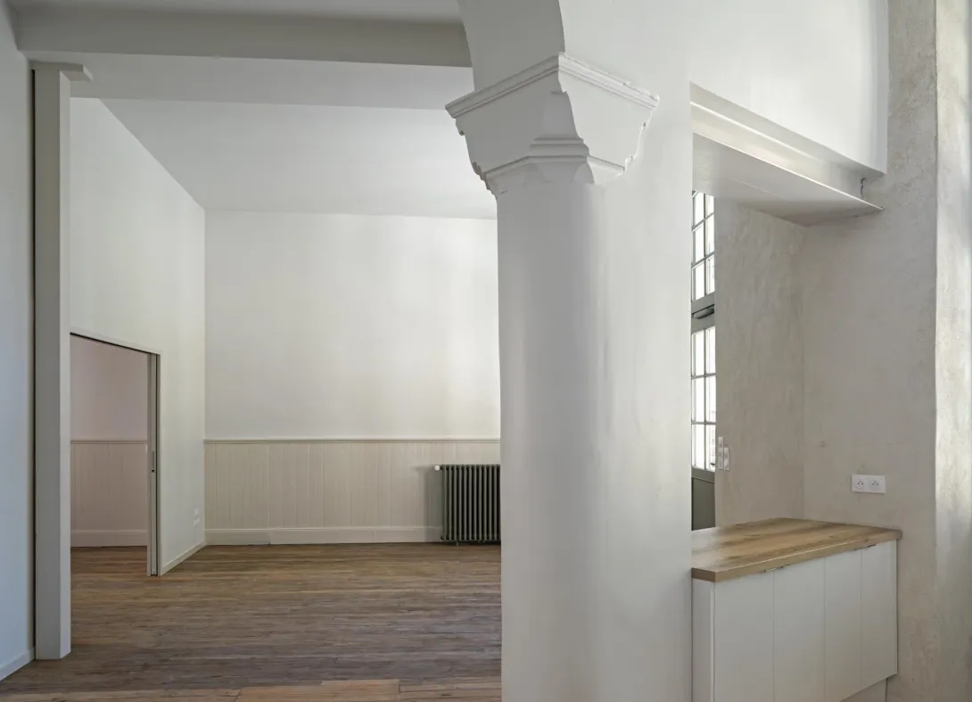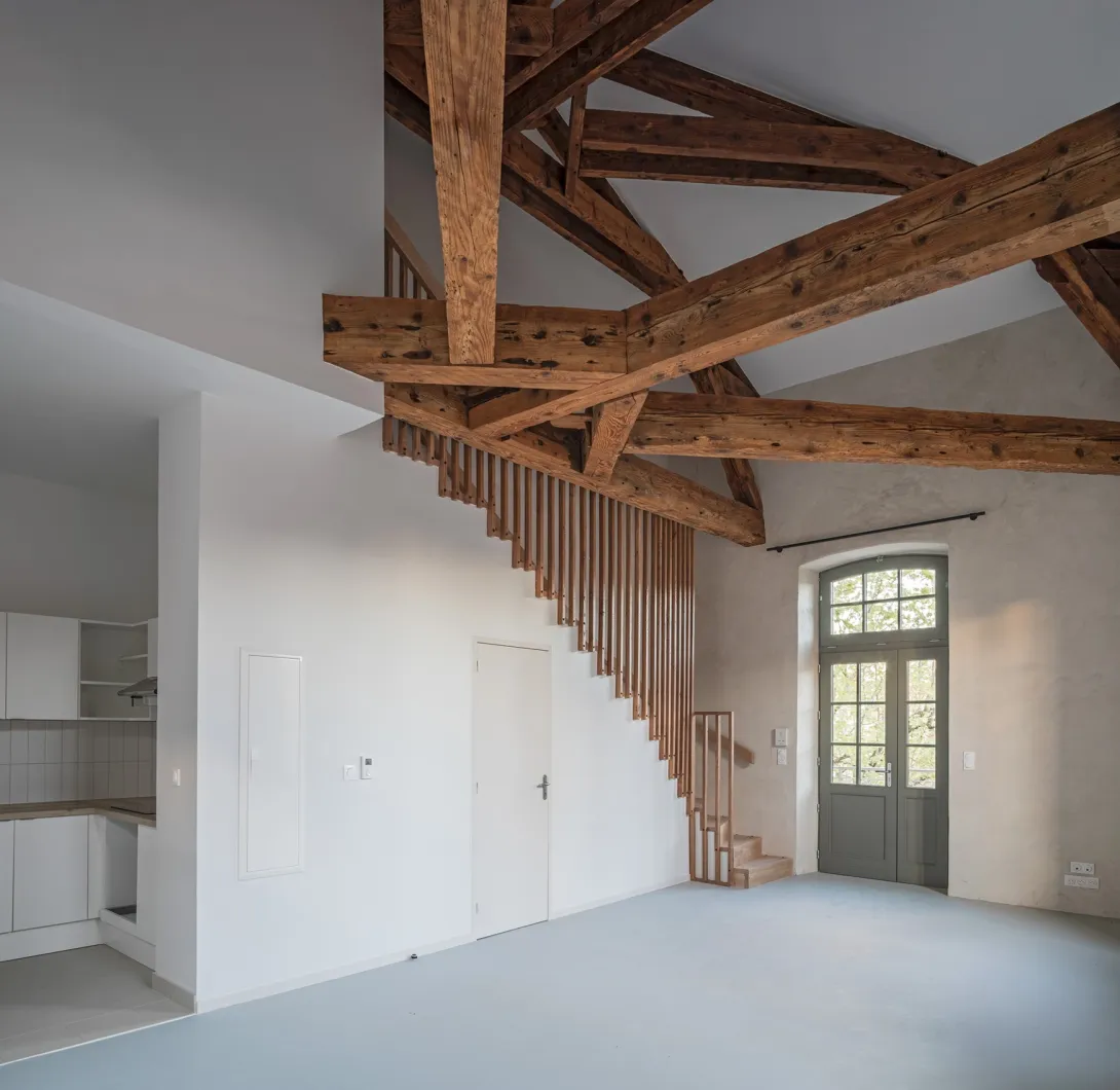 La reconversion de ce bâtiment patrimonial a fait l’objet d’une démarche poussée sur le réemploi de matériaux (> en savoir plus), qui a été structurante pour l’ensemble du projet.