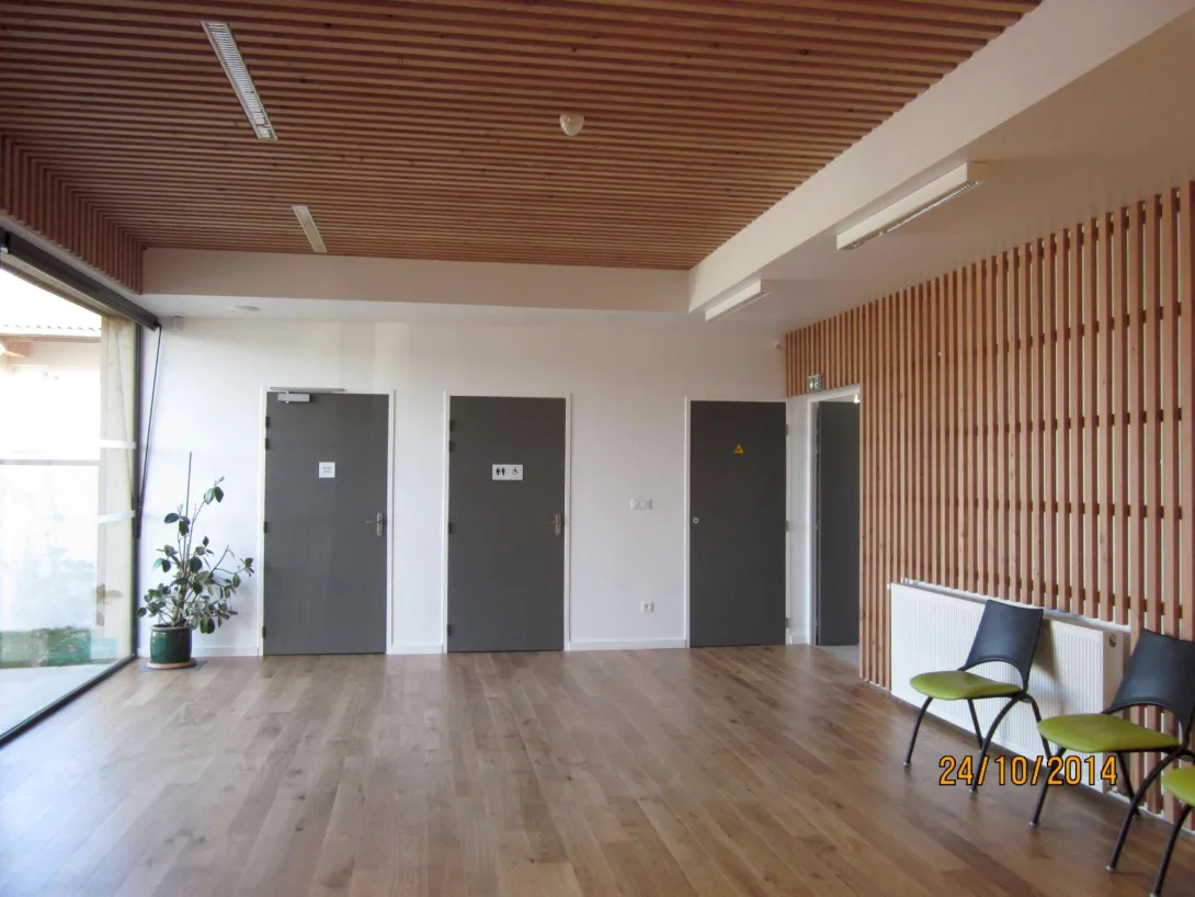 - Parquet en bois massif (chêne) dans salle de réunion RDC.