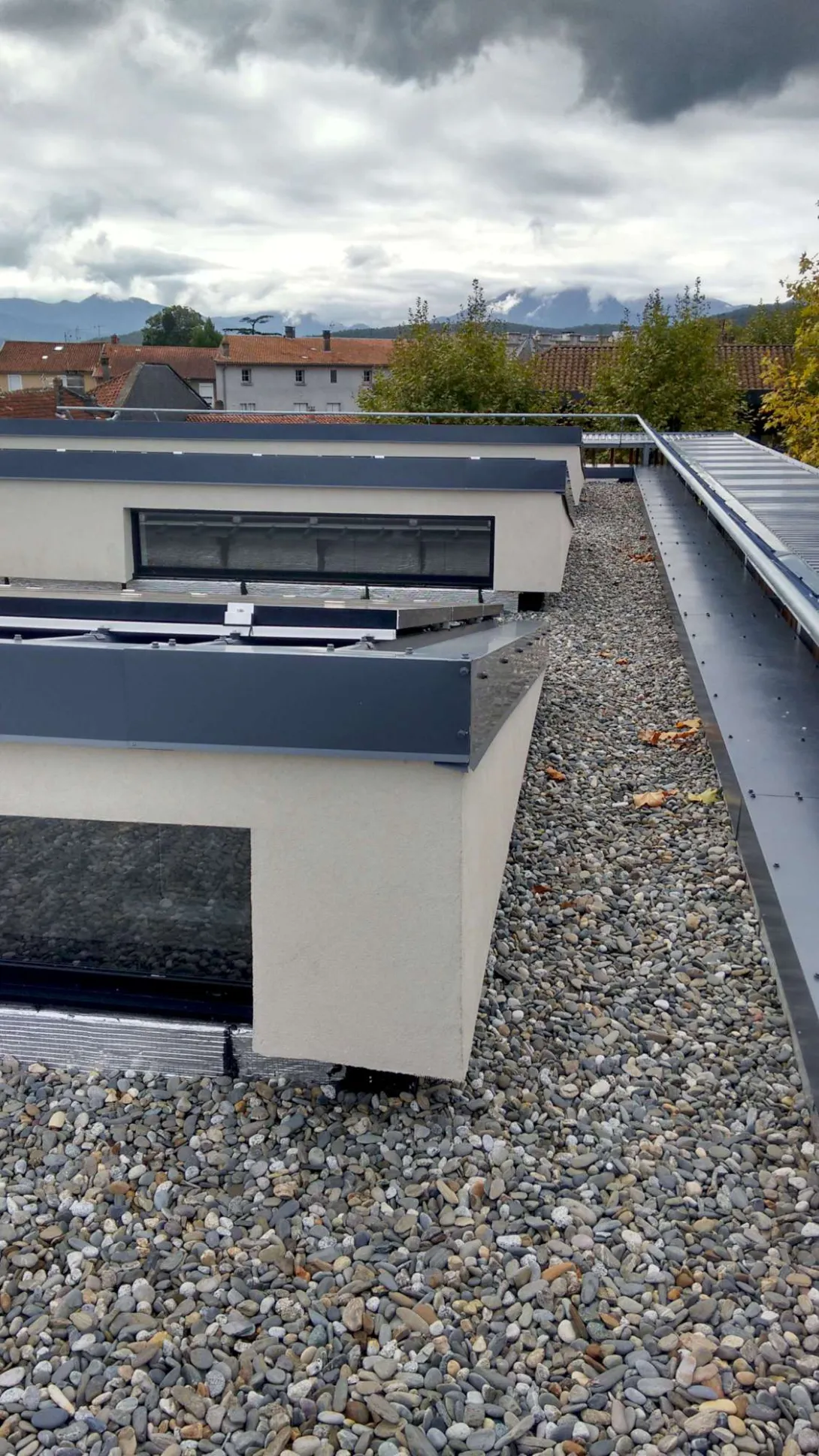- Toiture terrasse : dalle béton isolée par 25 cm de laine de roche sous étanchéité bitumineuse (Uparoi = 0,15 W/m2.K)