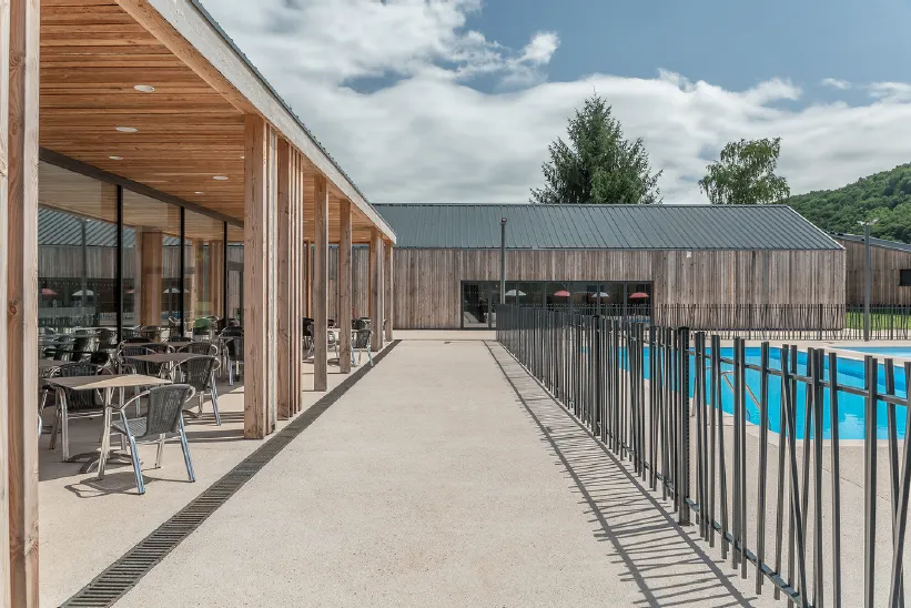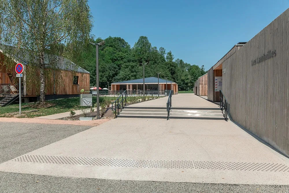 Le site compte aujourd’hui 14 chalets entièrement reconstruits (dont 2 adaptés aux personnes à mobilité réduite), 600 m² de salles communes, une piscine et des circulations arborées.