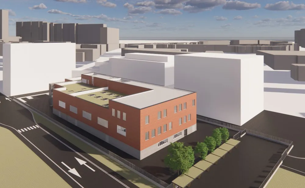 Sa construction prévue en béton sur la base de l’existant projette d’utiliser du béton bas carbone. Une partie de la toiture du bâtiment sera végétalisée. Une étanchéité claire, des places de parking perméables et des bassins de rétention sont prévus en complément pour lutter contre l’effet d’îlot de chaleur.