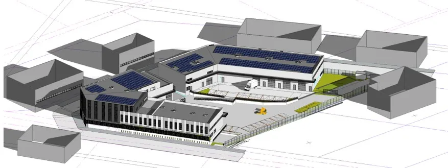 Un effort a été porté sur la réduction de l’empreinte carbone du béton des fondations, l’utilisation d’un isolant biosourcé en doublage intérieur des bureaux et l’étude d’ensoleillement des façades.