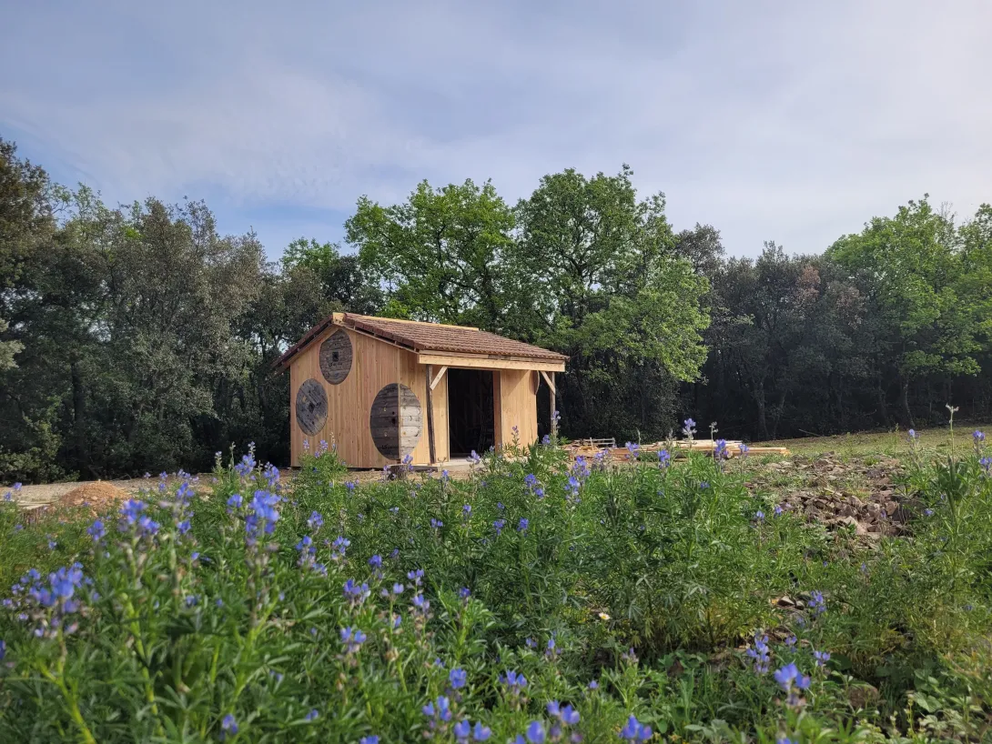 • Les tuiles de la toiture proviennent d’un chantier de déconstruction de chalets en bois réalisés quelques mois plus tôt à aux alentours de Lodève.