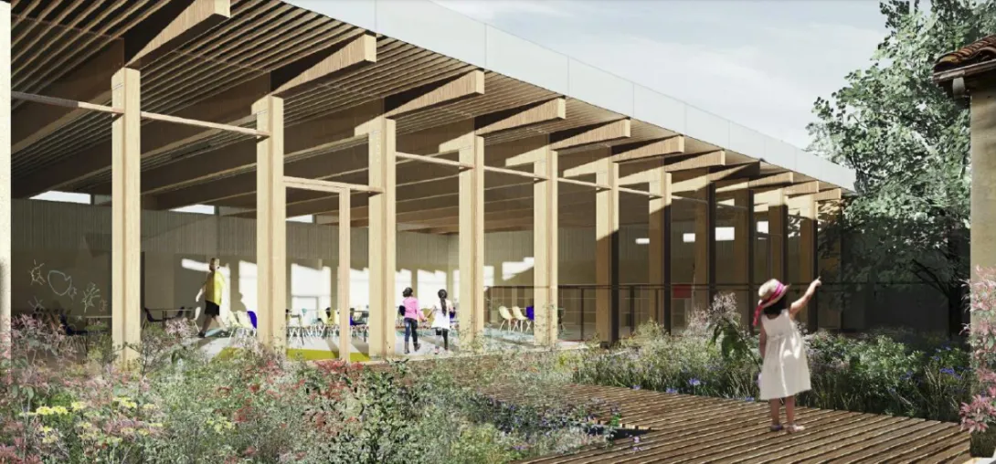 Pour répondre au mieux aux attentes des usagers, la commune de Clarensac a pensé un remaniement d’un ensemble de bâtiments publics, tels que la mairie, la crèche, la salle des fête, le local de police et autres infrastructures, à la suite du projet de construction de cette cantine scolaire. Le suivi par la démarche BDO a ainsi permis à la maîtrise d’œuvre de pousser les ambitions initiales de la simple construction d’une cantine vers un projet QDO. La construction neuve de la cantine scolaire de réchauffage pour une école maternelle prévoit l’emploi de matériaux biosourcés (chanvre) et d’énergies renouvelables (installation photovoltaïque), et place le confort et la santé des usagers.