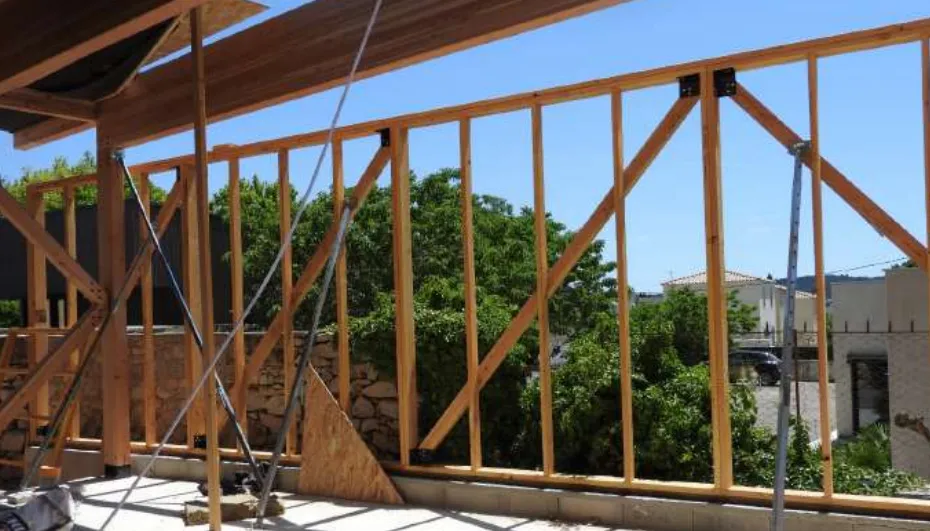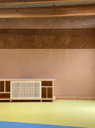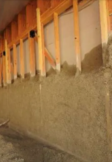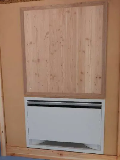 - Salle : enduit chaux - isolation en béton de chanvre - ossature bois - enduit terre (R = 5,4 m².K/W)