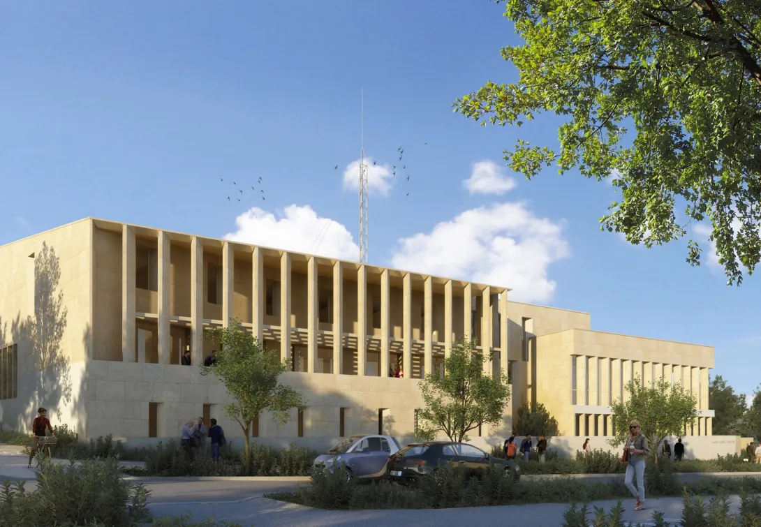 Implanté sur un ancien parking, le bâtiment sera construit en ayant recours aux filières locales de bois et de pierre.