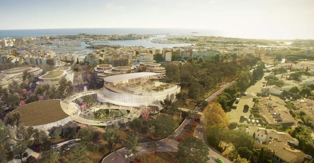 La construction de ce Palais des Congrès s’inscrit dans une démarche de réaménagement du rond-point de l’entrée du Cap d’Agde. Cet équipement public attractif entre dans une démarche dont les objectifs sont, entre-autres, de mettre en valeur l’entrée du Cap d’Agde, dynamiser la station en étendant son centre au-delà du port, offrir un quartier totalement piéton et organiser les flux (piétons, vélos, voitures et camions pour les commerces).