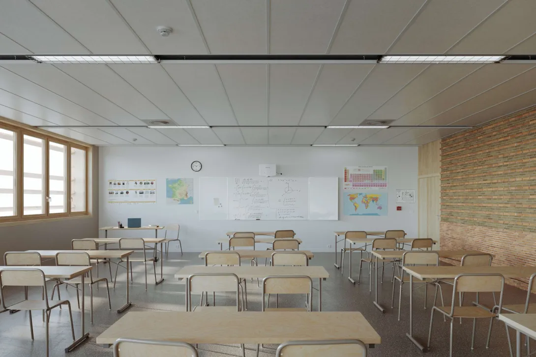 - Usages : collège (600 élèves extensible à 720), 1 logement de fonction, parking privé, public et bus, plateau sportif mutualisable, salle d’activités culturelles mutualisable