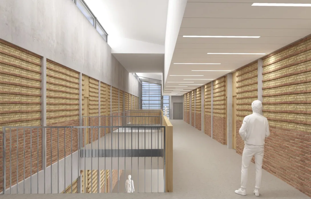 - Façade RDC béton avec ITI laine de bois et parement brique