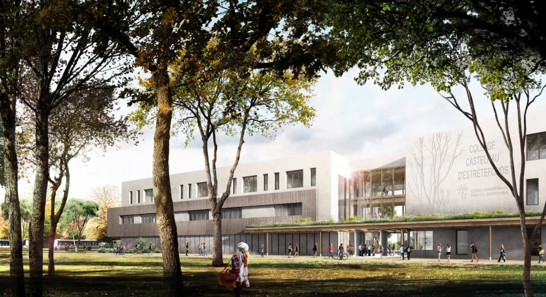 Le collège de 600 élèves à Castelnau-d’Estrétefonds a été reconnu Bâtiment Durable Occitanie niveau OR pour sa phase Réalisation en octobre 2024, confortant ainsi le niveau OR déjà obtenu en phase Conception.