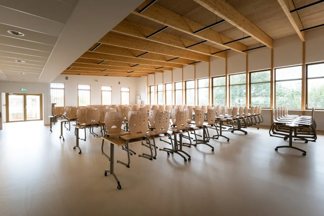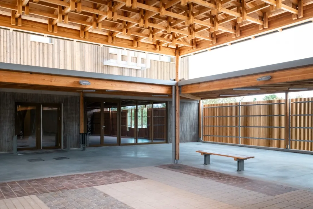 Pour réduire l’empreinte carbone de la construction, le bois a été associé à du béton bas carbone ou recyclé et le réemploi mobilisé pour des aménagements extérieurs et intérieurs. La démarche autour du réemploi expérimentée sur ce projet a permis au Département de l’intégrer pleinement à ses nouvelles pratiques.