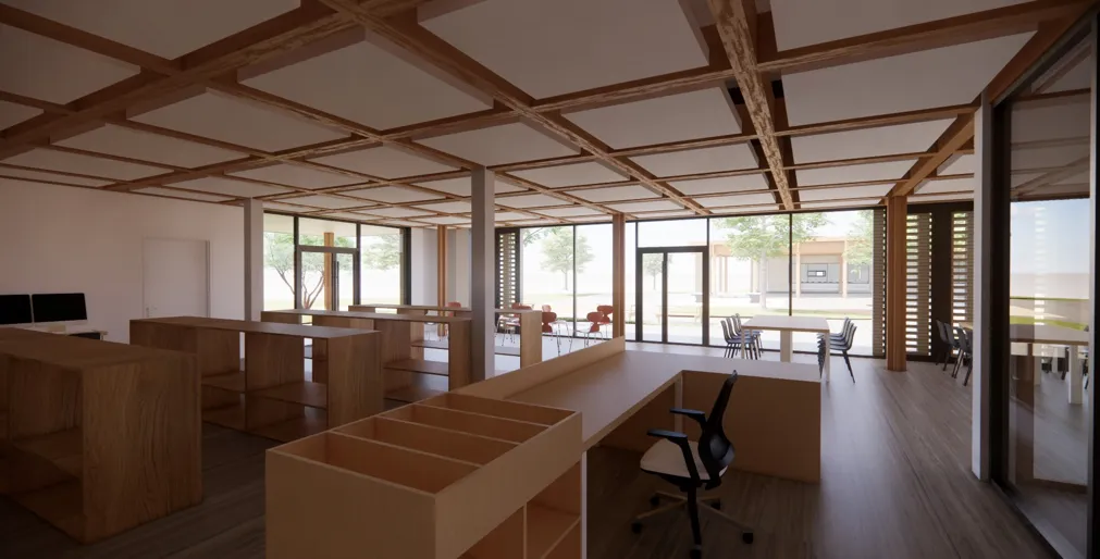 Les travaux embarquent les objectifs actuels de réduction des dépenses énergétiques (décret tertiaire), de réduction des impacts carbone (conservation de l’existant, matériaux biosourcés dont bois locaux avec garantie de la traçabilité, réemploi in-situ), d’utilisation et de production d’énergies renouvelables, d’augmentation du confort et de la qualité paysagère.