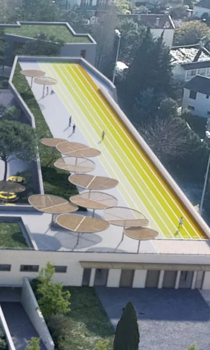 • Usages : collège de 750 élèves (24 divisions) - salles banalisées, salles spécialisées, salle polyvalente, foyer des élèves, CDI, restauration, locaux administratifs et techniques, vestiaires EPS, piste d’athlétisme, plateaux sportifs