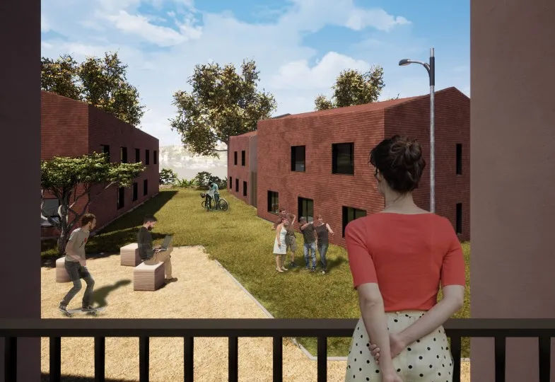 - Usages : 80 logements étudiants ; 4 locaux vélo, 1 laverie, locaux techniques, 1 loge gardien ; boulodrome, aire de pique-nique, potager, poulailler, placette centrale, coursives partagées