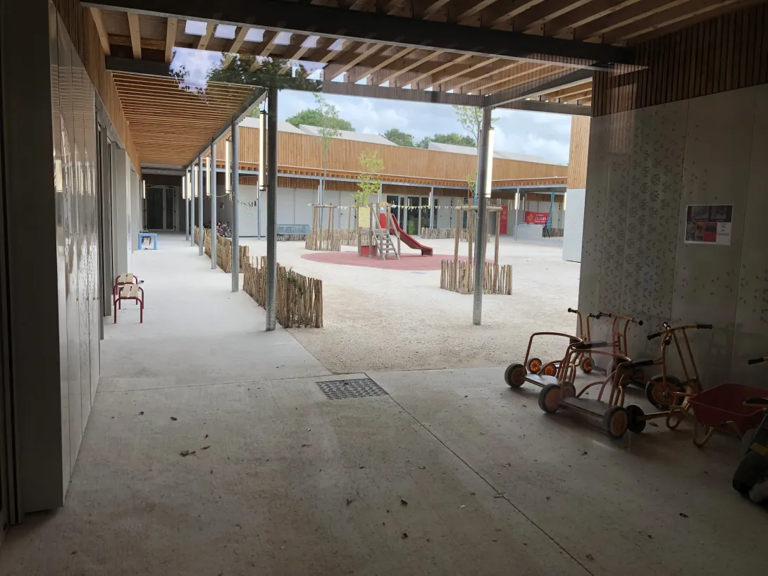 • Usages : École maternelle, restaurant scolaire intégrant une cuisine de production, salles périscolaires, aire de sport, bureaux du Syndicat Intercommunal de Regroupement Pédagogique (6 communes)