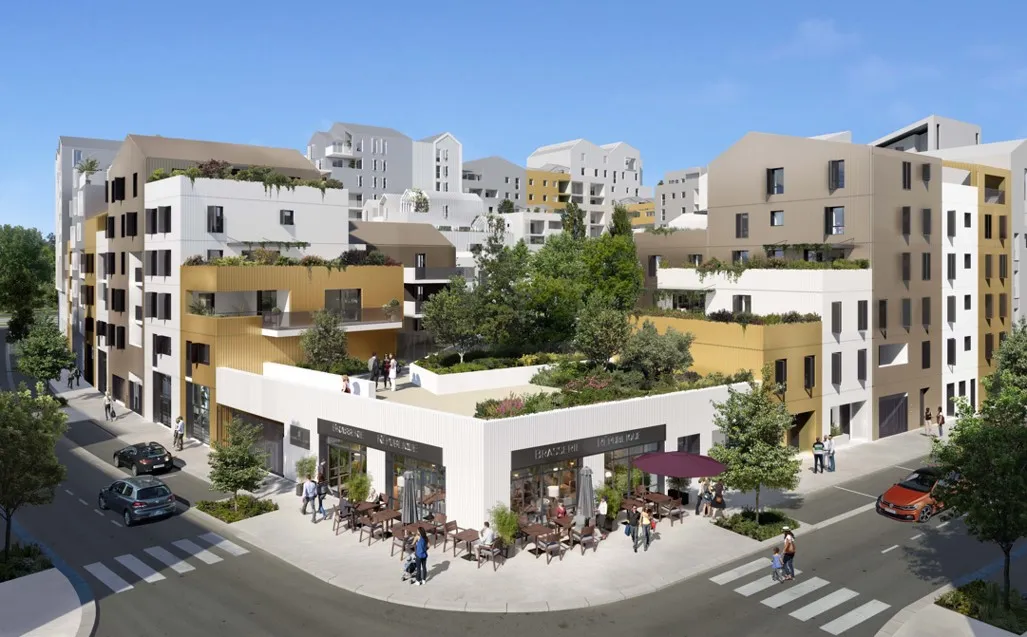 Il a notamment pour ambition d’intégrer les grands principes d’une construction bioclimatique sur l’ensemble du lot et proposer des aménagements extérieurs agréables à vivre en fonctions des contraintes climatiques. Il est connecté au réseau de chaleur et de froid de la ZAC.
