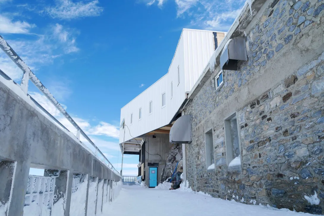 Le chantier se déroule uniquement en période d’été, entre mai-juin et septembre-octobre, du fait des conditions climatiques particulièrement contraignantes à cette altitude (neige, glace, vents violents).