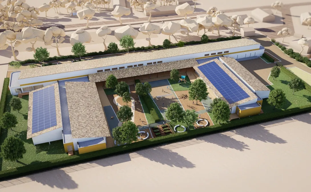 La construction du groupe scolaire est un projet mené en marché de conception-réalisation et fait appel à de la préfabrication 3D et 2D en bois pour la majorité des locaux. Pour le bien-être des enfants et leur sensibilisation à l’environnement, il est prévu d’aménager la cours en « oasis ».