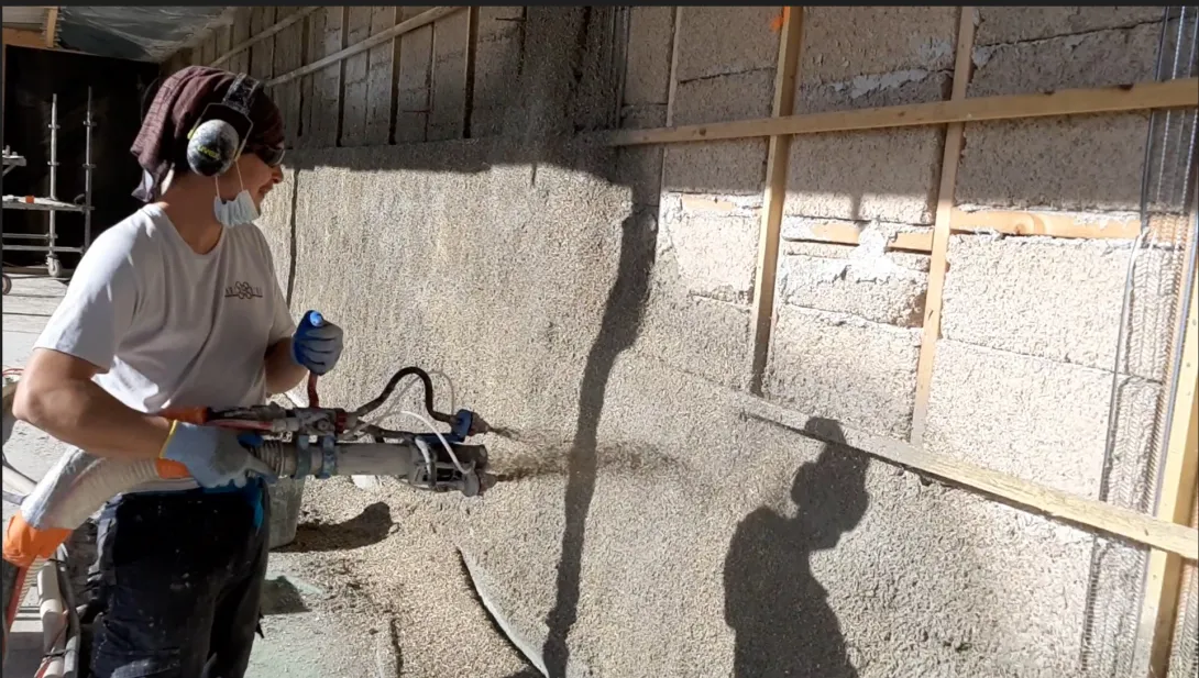 • béton de chanvre de 15 cm d’épaisseur projeté mécaniquement