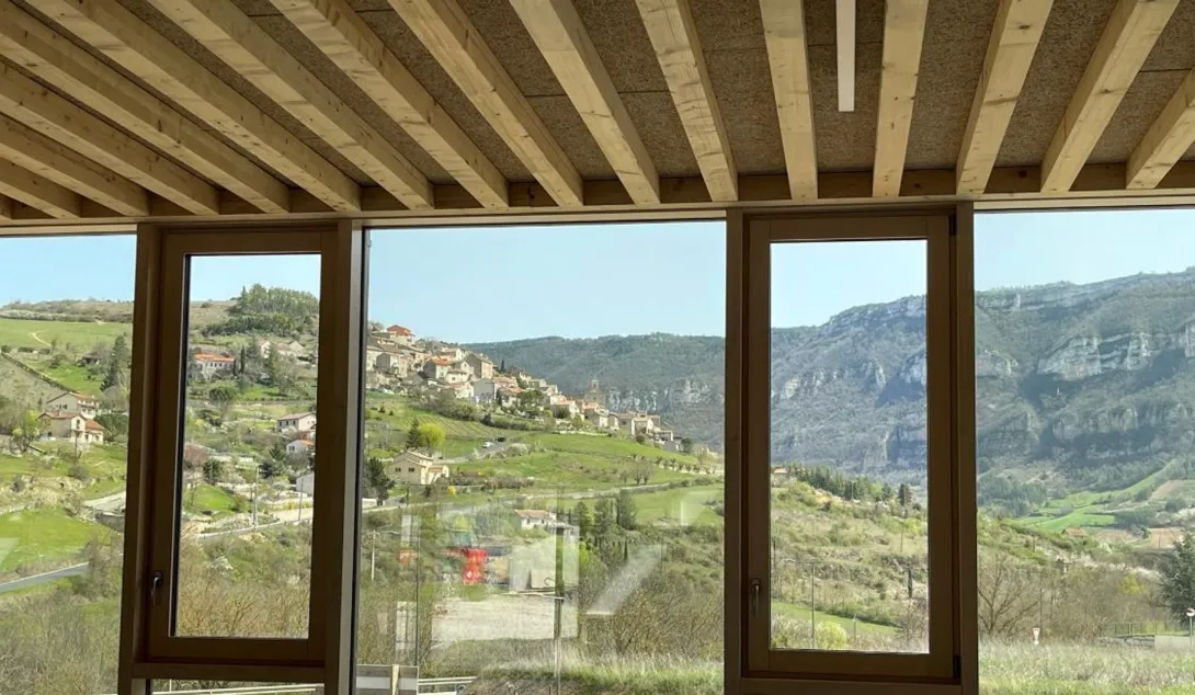 L’enveloppe, très performante, est constituée de matériaux majoritairement biosourcés. La volonté de soutenir les filières courtes locales a conduit à recourir à la marque Bois des Territoires du Massif Central (BTMC).