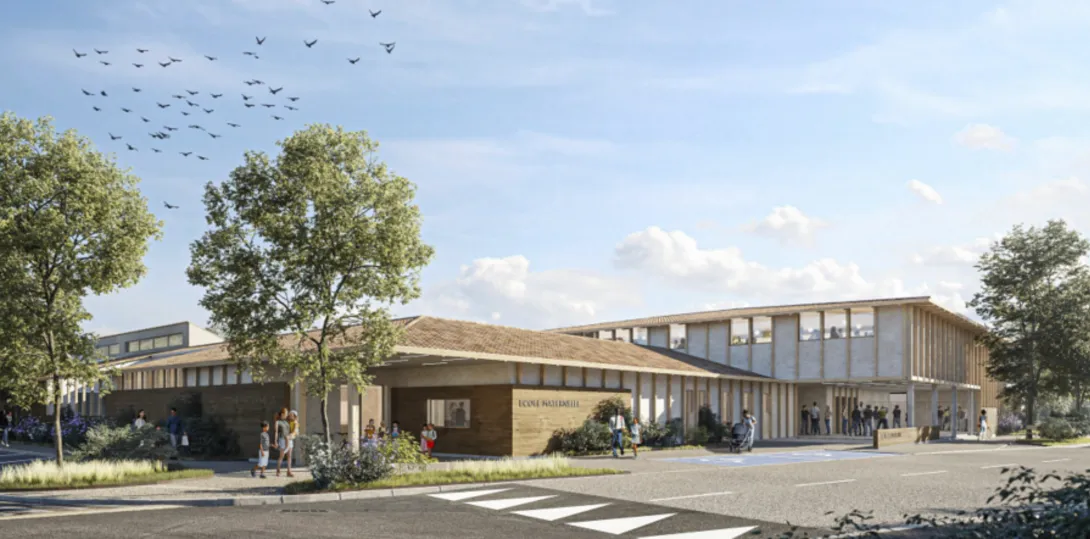 Le projet de construction d’un groupe scolaire à Montfrin a été reconnu Bâtiment Durable Occitanie niveau OR en octobre 2023 pour sa phase Conception.
