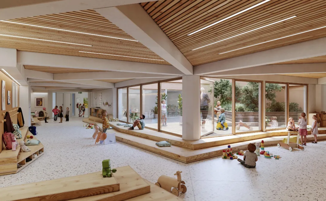 Les cours de récréation seront en partie désimperméabilisées et végétalisées, avec une diversité d’espaces de façon à créer des lieux plus inclusifs et apaisants.