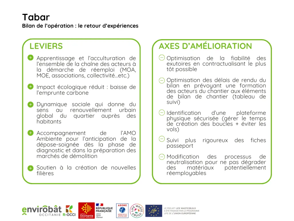 - L’anticipation de l’identification des matériaux permet de limiter les risques de dégradations en amont du réemploi
