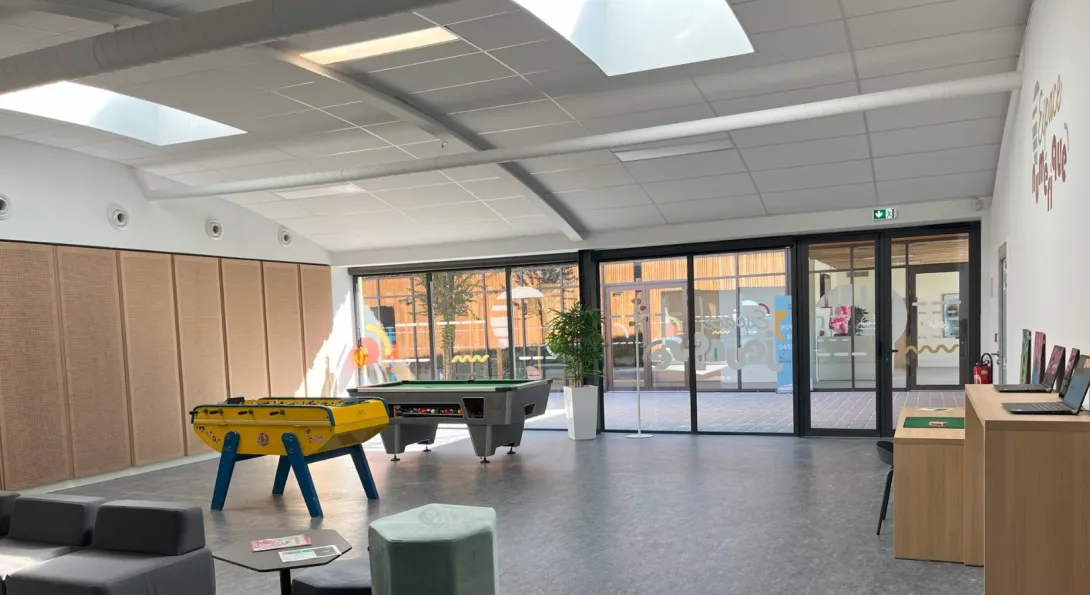 - Usages : Espace jeunesse : 2 salles de danse équipées, 1 dojo et des salles d’activité (jeux, multimédia, études...) et Salle polyvalente avec espaces associés (traiteur, salle de réunion...)