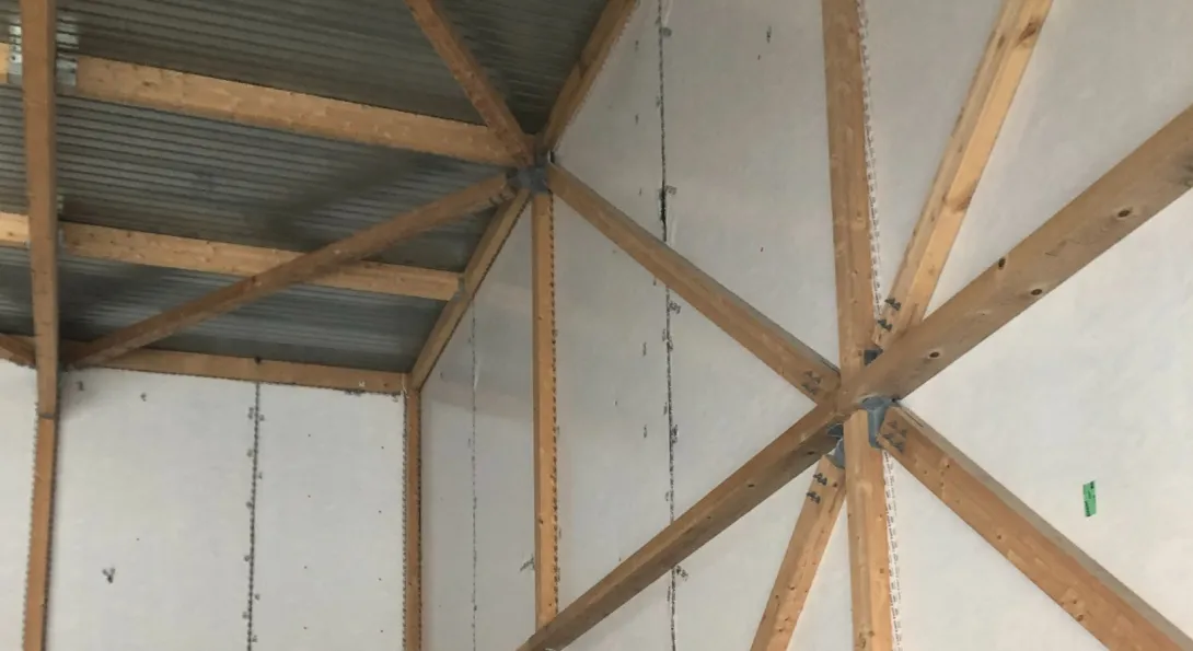 - Neuf : ossature bois / laine de bois (avec complément intérieur en laine de roche sur certains murs très minoritaires) / plaque de plâtre (R > 6 m².K/W)