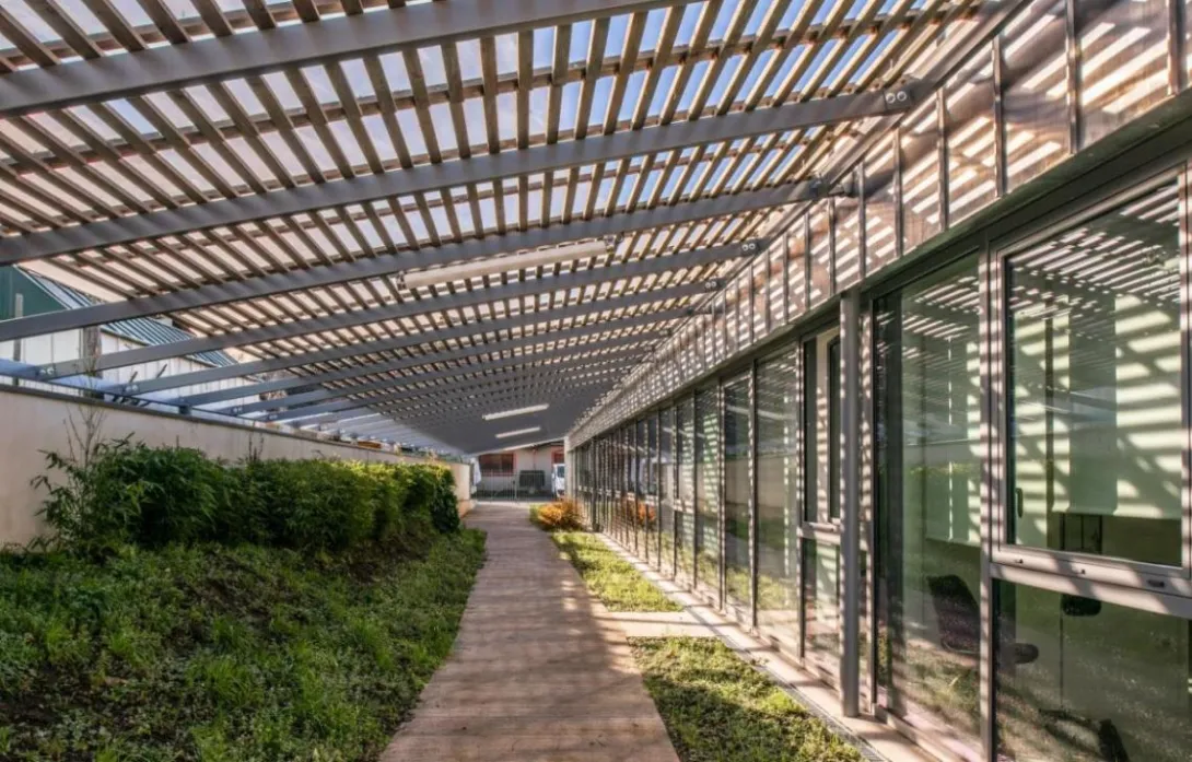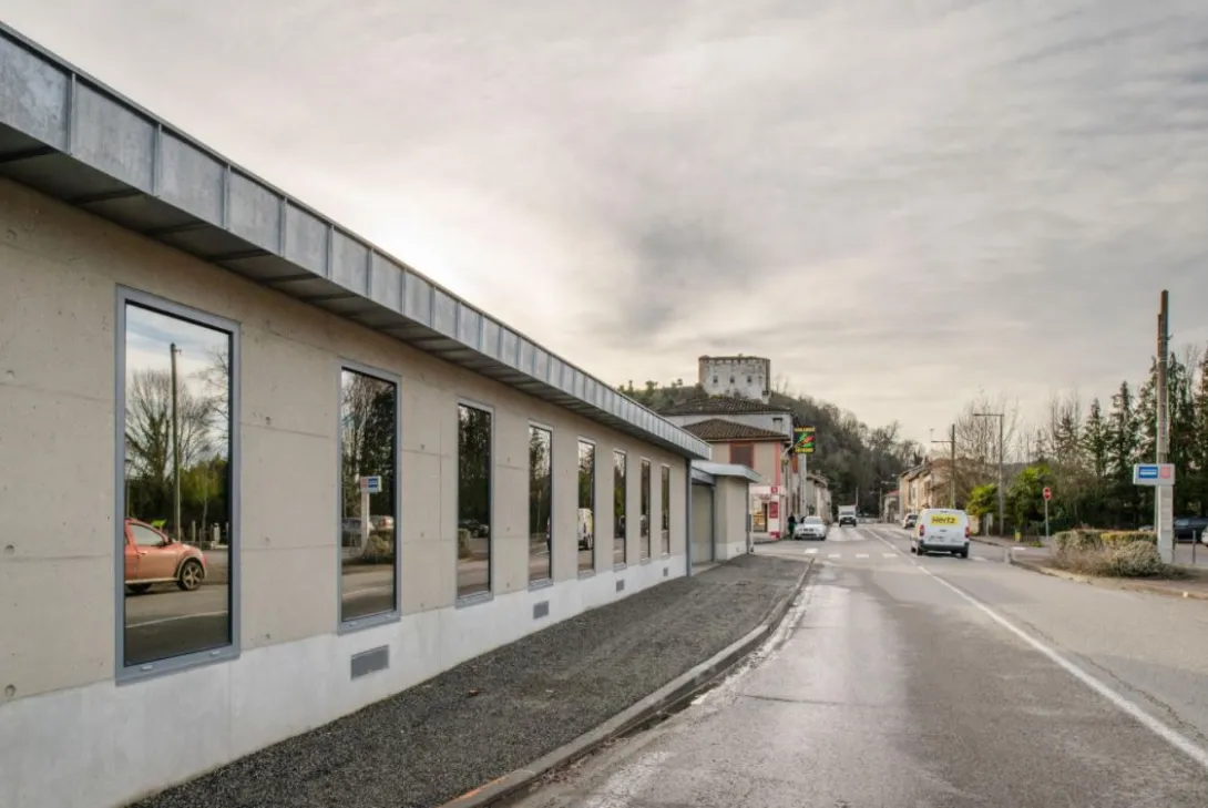 Livrée en octobre 2020, la Maison de Santé prend place dans le centre-bourg de Prat-Bonrepaux face à la halle et à proximité immédiate des commerces, le long de la rue Nationale. L’orientation nord/sud a été privilégiée et la façade sud, largement ouverte, est protégée par une ombrière au-dessus d’une promenade végétalisée.