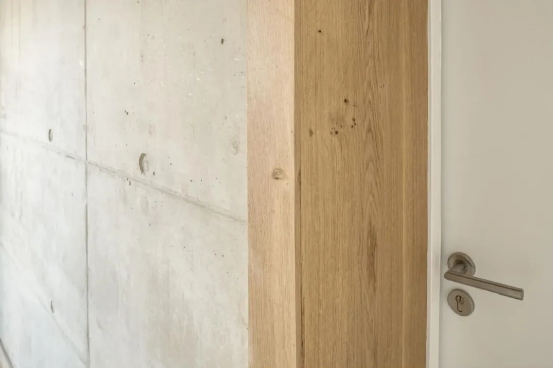 La terre est présente à la fois en extérieur - via des doubles murs en béton d’argile de site stabilisé à 11% de ciment isolés par l’intérieur - et en intérieur au niveau d’un mur de refend (béton d’argile également) et des finitions intérieures (enduits).