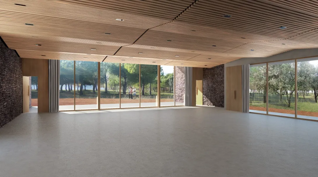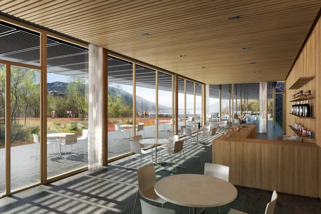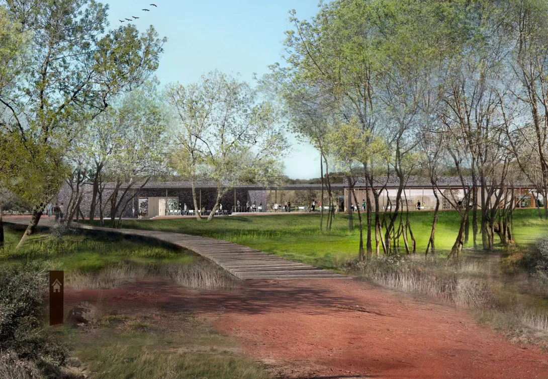 La Maison de site s’organisera autour de deux bâtiments : l’un comprenant un espace muséographique, un restaurant et des bureaux et l’autre une halle destinée à abriter des manifestations toute l’année : la Halle du Lac.