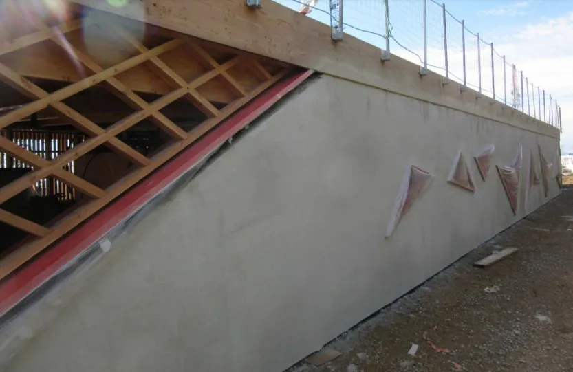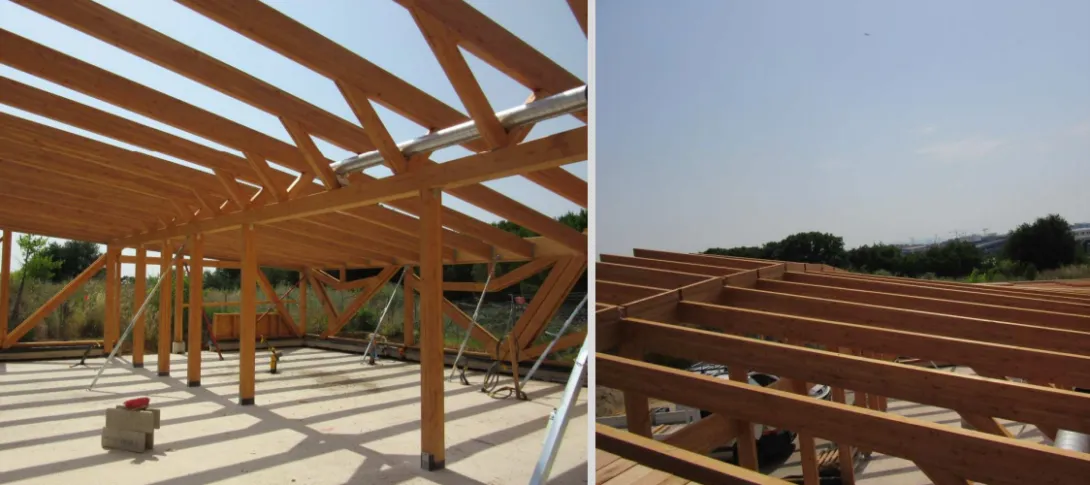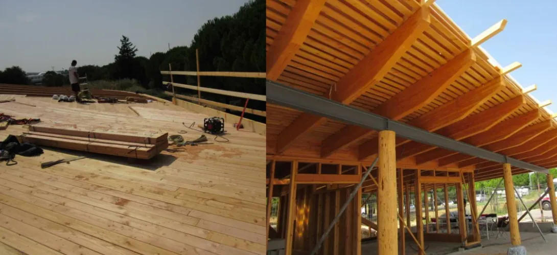 - Toiture végétalisée : terre végétale / panneaux lamelles orientées / isolation fibre de bois (25 cm) - laine de roche (6 cm) / lame de bois