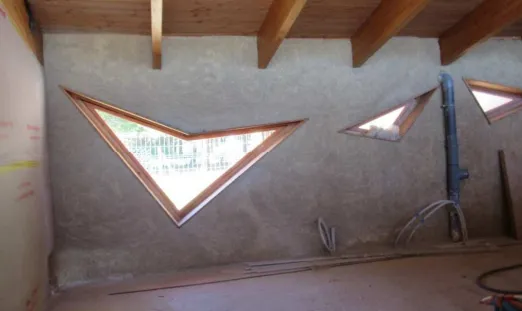 - Mur en ossature bois (sas), isolation fibre de bois (8cm)