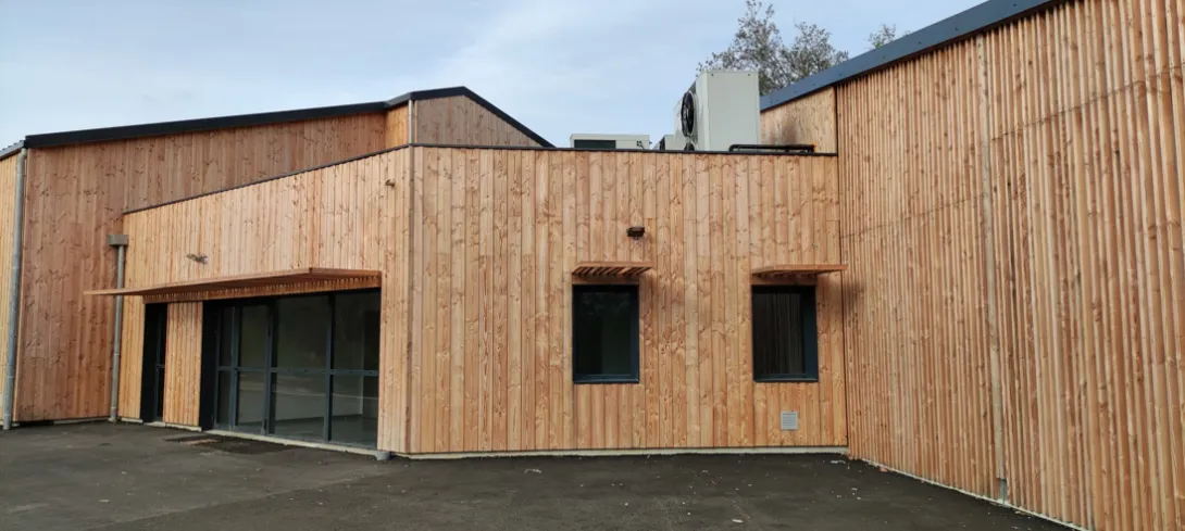 - Atelier Châtaigne et Brasserie : murs ossature bois ; isolation laine de bois 14 cm ; bardage bois (R = 3,5 m².K/W)