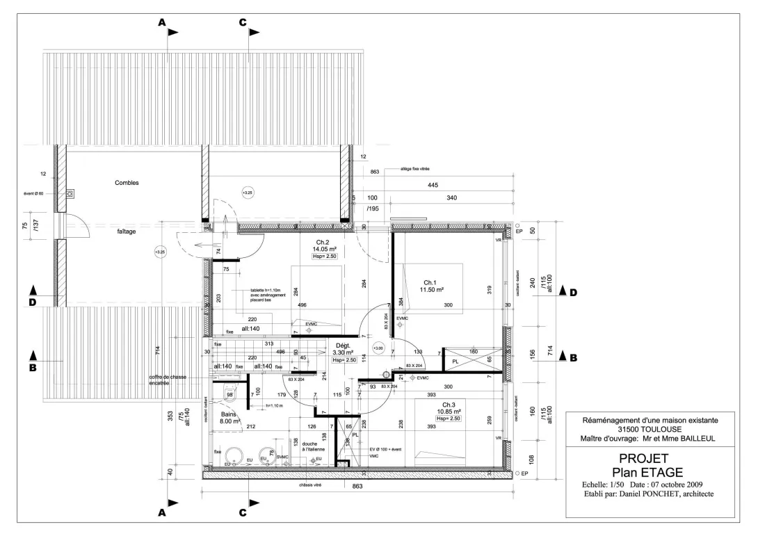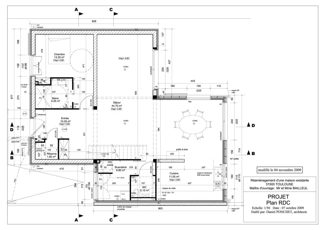 • Pour cela une extrême vigilance a été portée à l’isolation de la partie existante conservée et aux liaisons avec la partie en extension bois afin d’éviter tout ponts thermiques et toutes déperditions, ainsi qu’une bonne étanchéité à l’air.