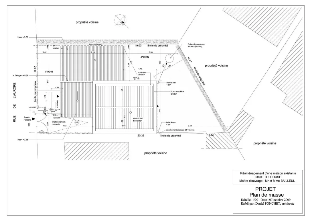 Dans une impasse d’un quartier résidentiel toulousain, une maison ancienne occupe une petite parcelle avec un jardin en partie arrière.