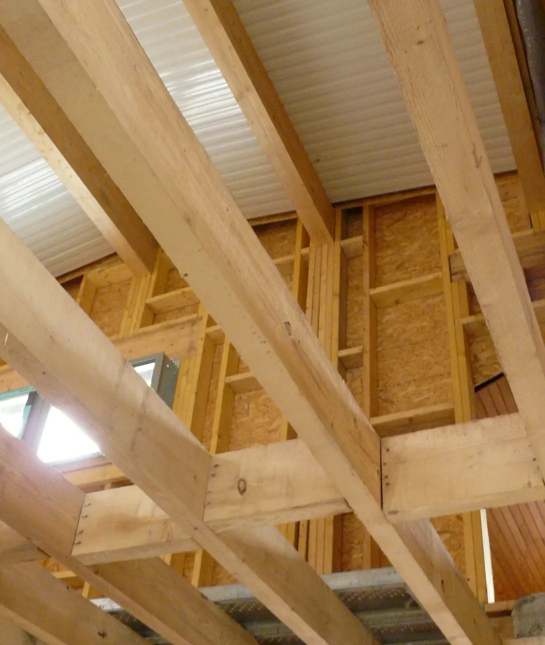 • Charpente et couverture : ossature bois, bardage extérieur en bois, isolation toiture en ouate de cellulose