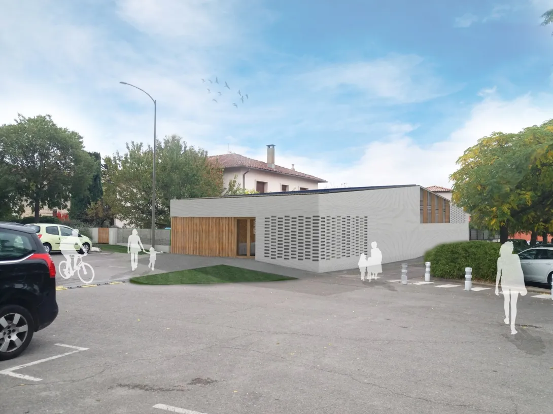 Le projet consiste en la création d’un Relais Petite Enfance, lieu d’accueil gratuit pour les assistants maternels, les parents et leurs enfants, sur une parcelle du centre-ville acquise par la ville. Ce nouveau bâtiment jouxtera la maison individuelle des années 1970 présente sur la parcelle, qui sera réhabilitée pour abriter une ressourcerie. L’objectif de cette opération est d’offrir de nouveaux services de proximité sans étaler davantage la ville, en s’intégrant dans les enjeux actuels de performance environnementale.