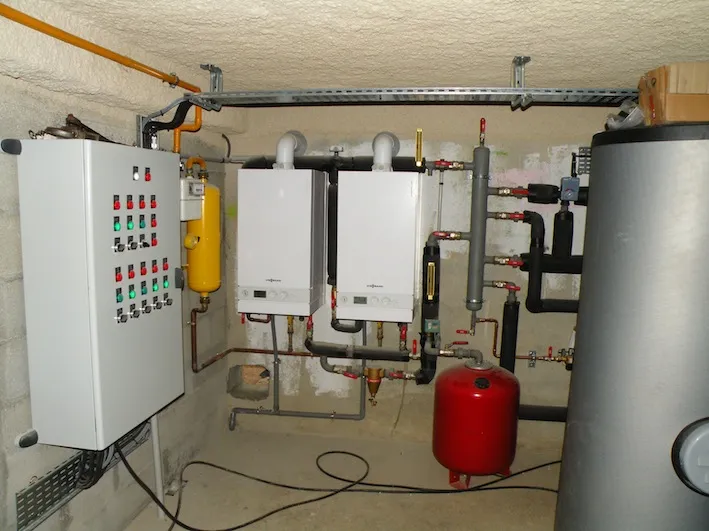 - Chauffage + Eau Chaude Sanitaire : 2 chaudières gaz à condensation 23kW chacune + capteurs solaires en toiture (28m²)