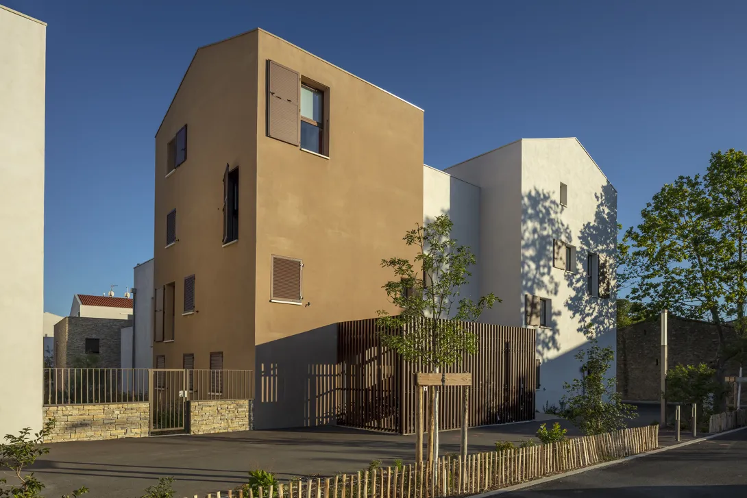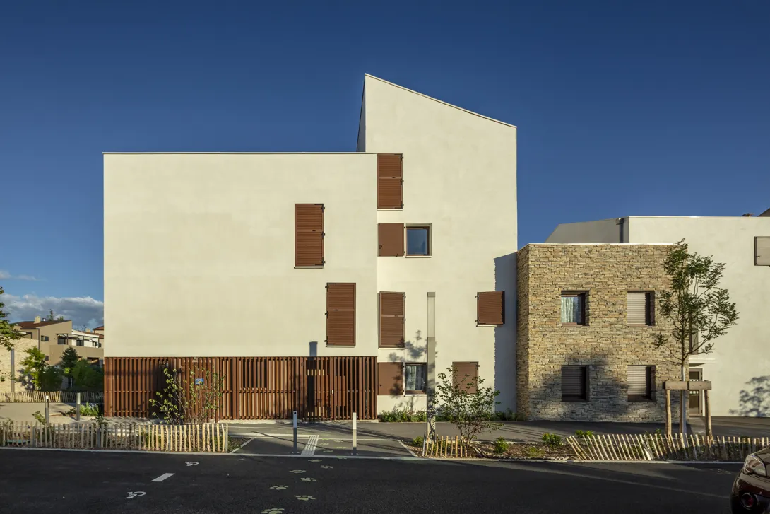 Cette résidence de 85 logements comprend 35 logements sociaux et 50 logements en accession dont 15 en accession sociale. Les 10 bâtiments, du RDC au R+3 avec des toitures terrasses et en double pentes, s’inscrivent dans la continuité de la volumétrie initiée par les nouvelles constructions du secteur et reprennent la typologie du paysage de toiture caractéristique du vieux village de St Georges.