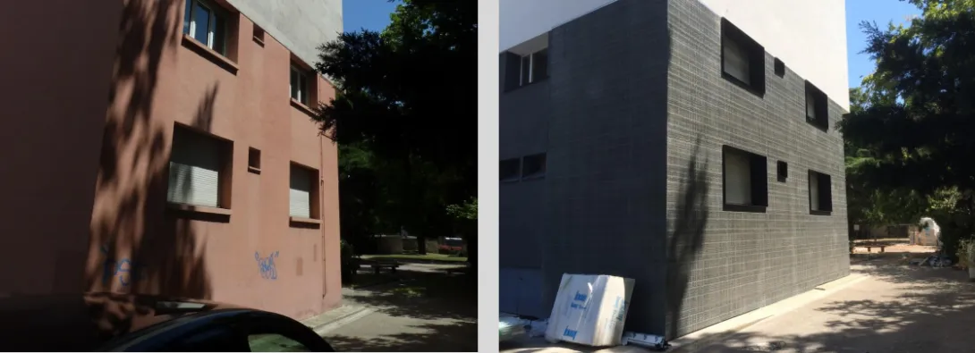 Datant de 1958, l’immeuble de logements sociaux du Grand Talabot est établi en 12 niveaux et abrite 46 T4 orientés Nord/Sud. Il se situe près de la gare de Nîmes, dans un quartier en mutation à l’Est du centre-ville. Malgré le remplacement des chaudières gaz et des menuiseries et autres rénovations qu’il a subit, le bâtiment reste très énergivore.