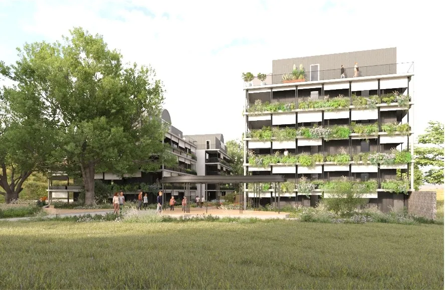 Au-delà de cette démarche constructive innovante, le projet vise à offrir des logements agréables à vivre : les façades sont conçues en double peau partiellement végétalisée, les toitures sont prévues pour être habitées et plusieurs espaces - intérieurs comme extérieurs - ont vocation à être partagés.