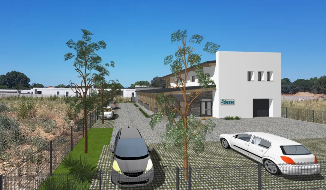 Situé sur l’écoparc de la Garrigue à Saint-André-de-Sangonis, le bâtiment « La Ruche » héberge le siège social de l’entreprise Adesse, spécialiste en matière de gestion intégrée des équipements et optimisation des consommations énergétiques.